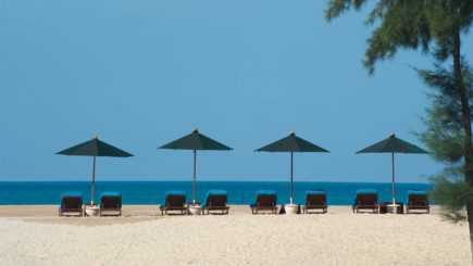 It’s a magic place to relax at the private pool of your beautiful villa, or under palm trees at the infinity pool, unwind at the quiet beach, get pampered at the Splendora Spa with one-of-a-kind therapies incorporating best natural ingredients, or experience yoga, cooking classes, play tennis or play golf-a great golf course is just around the corner. The resort also organizes private discovery tours to the region’s striking temples. And when it comes to dining experiences, menus offer mouth-watering Thai, Western and fusion cuisine catered to all dietary preferences. Dinner is accompanied by a live saxophonist, setting the mood for a classy yet intimate atmosphere. The chef concocts romantic candlelit dinners served in the privacy our private of your villa or on the beach. Then there’s the truly unforgettable experience of the Twin Sunset. Just sink into the comfortable beach bed at the panoramic terrace with views of the ocean and the sandbank separating it from the running river Sipping a glass of your favourite cocktail, you will be awarded with a spectacular TWIN sunset, a magical effect produced by reflection of the red orange fireball in both the ocean and the river.