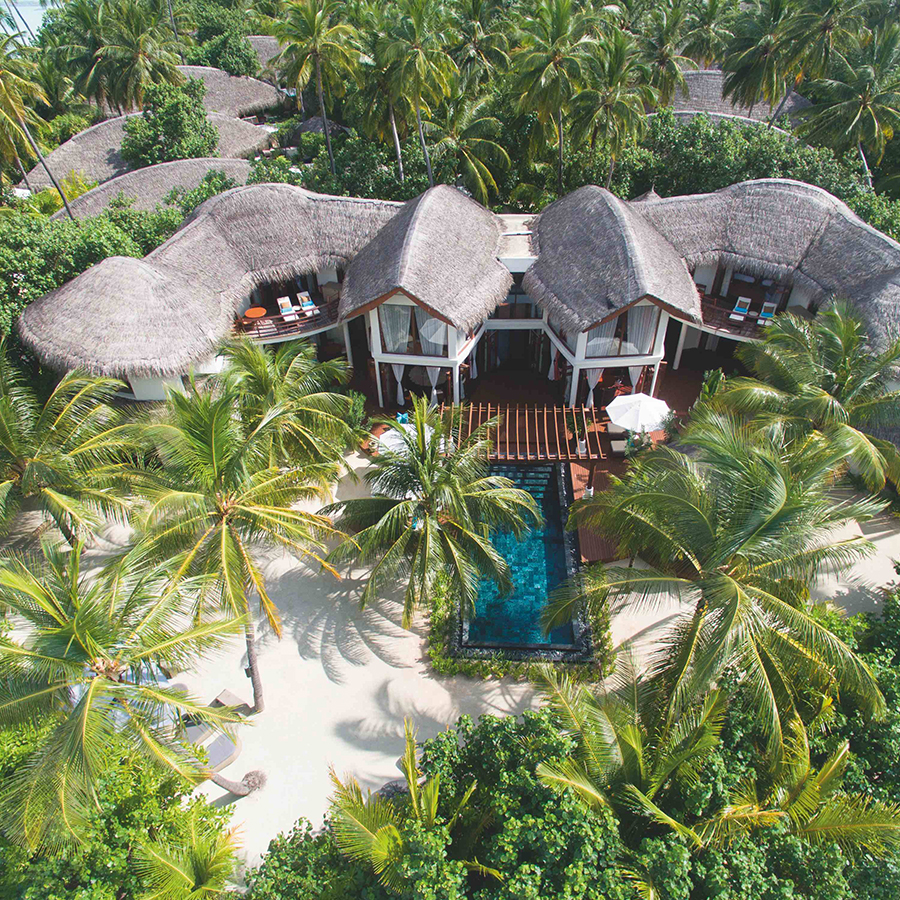 In the North Ari Atoll, shaped like a curved Dhoni , the Constance Halaveli stretches along 500 meters of land. In this world of turquoise colored water, white sand, marine life and luxuriant vegetation, the 85 villas, the Spa, the many amenities and the four restaurants are an invitation to plunge into an oneiric destination of discovery and zenitude. Different size villas are proposed to guests for their comfort. All are air-conditioned and have their own pool. Some are perched on stilts firmly planted in the crystal clear water and others are spread along the paradisiac beach. All are decorated elegantly with a blend of wood and marble and exceptionally well equipped. For extra perfection in this marvellous getaway, the hotel has 4 restaurants. The Jahaz with its international buffets, Asian fusion cooking at the Jing, the Grill at Meeru Beach and also Japanese inspirations at the Kaika Sushi Bar. Wine lovers will enjoy the wine tastings in the two cellars. Best Celebrations: Elegant villas, idyllic setting and many activities make the Constance Halaveli an ideal destination for a romantic getaway or for a total family escape!